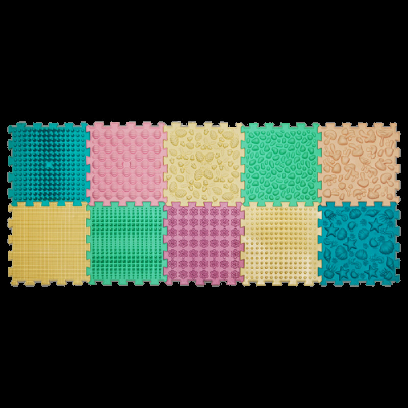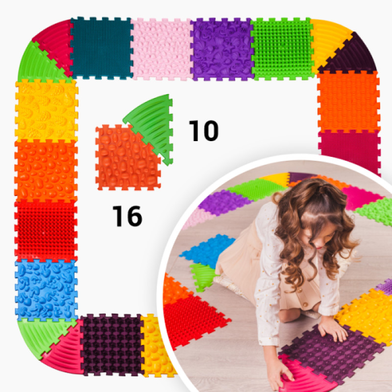 Масажний килимок складається з 10 пазлів і виготовлений із гігієнічного, гіпоалергенного матеріалу на основі ПВХ.