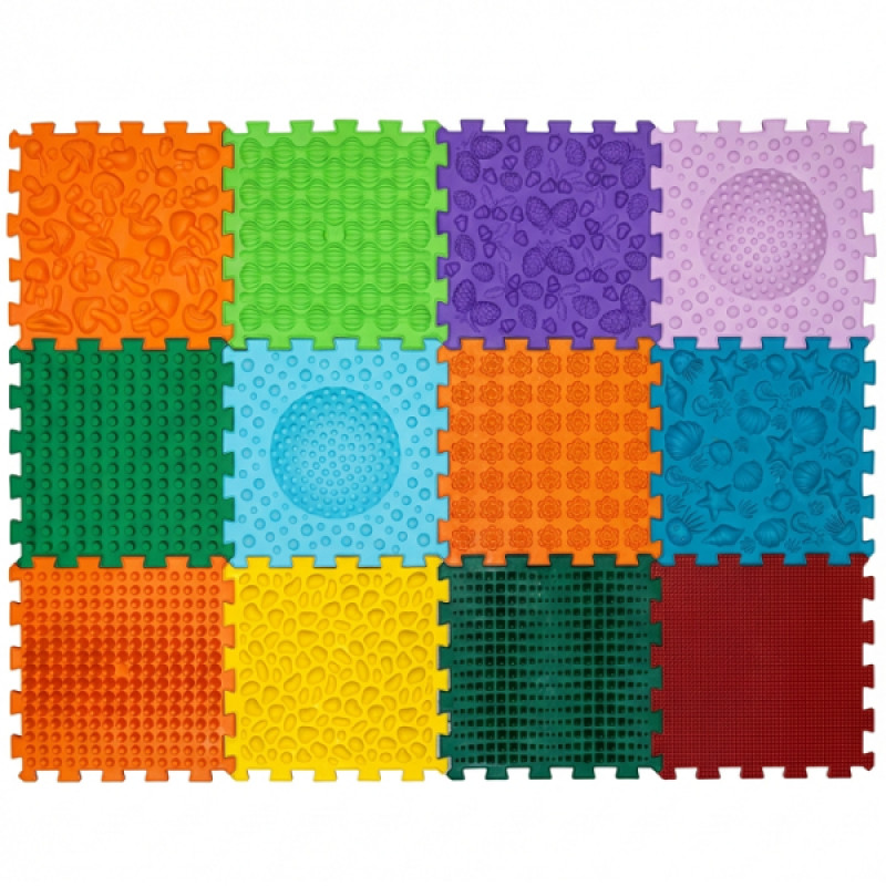 Усі пазли виробляються з одного матеріалу – безпечного, гіпоалергенного ПВХ без шкідливих домішок. Але завдяки різним текстурам відчуваються по-різному. Травка, мушлі, галька, гриби відносяться до більш м'яких пазлів. Вежі, Їжачки, Морські, Жолуді – до середніх. Піраміда, Шипи, Лотос, Шишки відносяться до більш твердих пазлів. Вплив поверхонь різної твердості надає найкращий ефект для масажу, тренування стоп та сенсорної інтеграції.