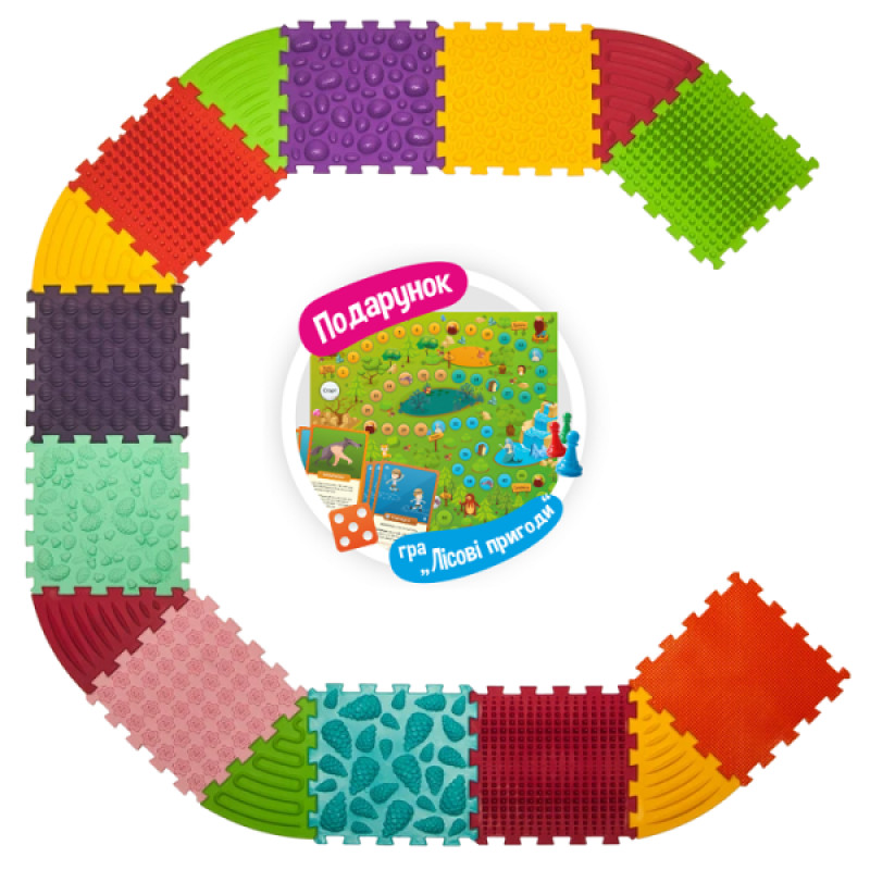 Що може масажний килимок:Усі пазли виробляються з одного матеріалу – безпечного, гіпоалергенного ПВХ без шкідливих домішок. Але завдяки різним текстурам відчуваються по-різному. Травка, мушлі, галька, гриби відносяться до більш м'яких пазлів. Вежі, Їжачки, Морські, Жолуді – до середніх. Піраміда, Шипи, Лотос, Шишки відносяться до більш твердих пазлів. Вплив поверхонь різної твердості надає найкращий ефект для масажу, тренування стоп та сенсорної інтеграції.
