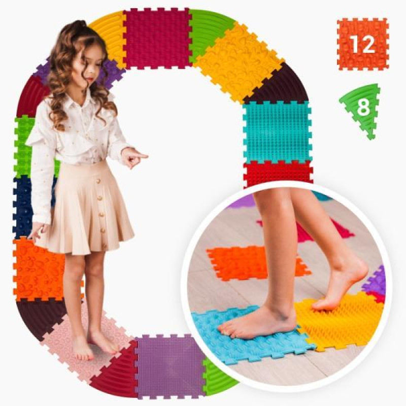 Масажний килимок складається з 12 квадратних пазлів та 8 трикутних.