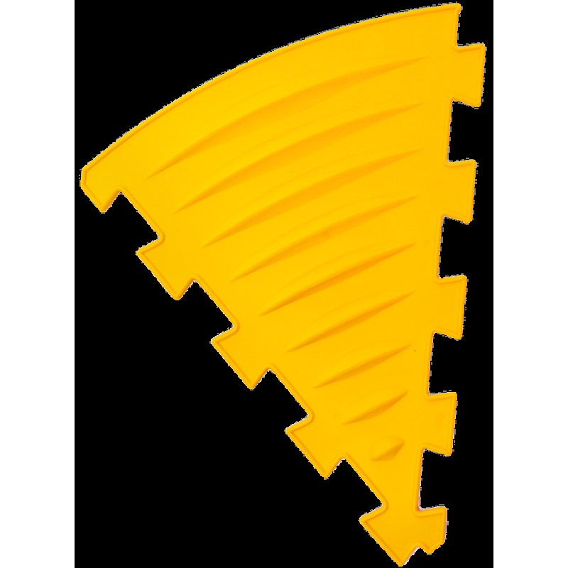 Набори із трикутними поворотними пазлами дозволяють створювати хвилясті доріжки, круги, візерунки, перетину. Таким чином ви зможете створювати маршрути навколо предметів меблів, кутів, економити місце в кімнаті, а головне – стимулювати фантазію та інтерес дітей до занять на килимках.
