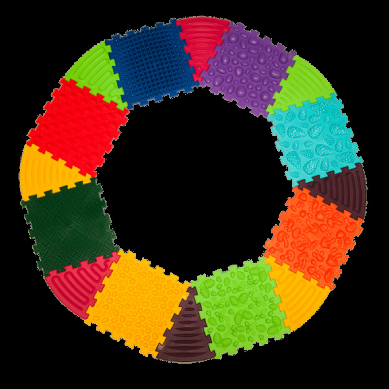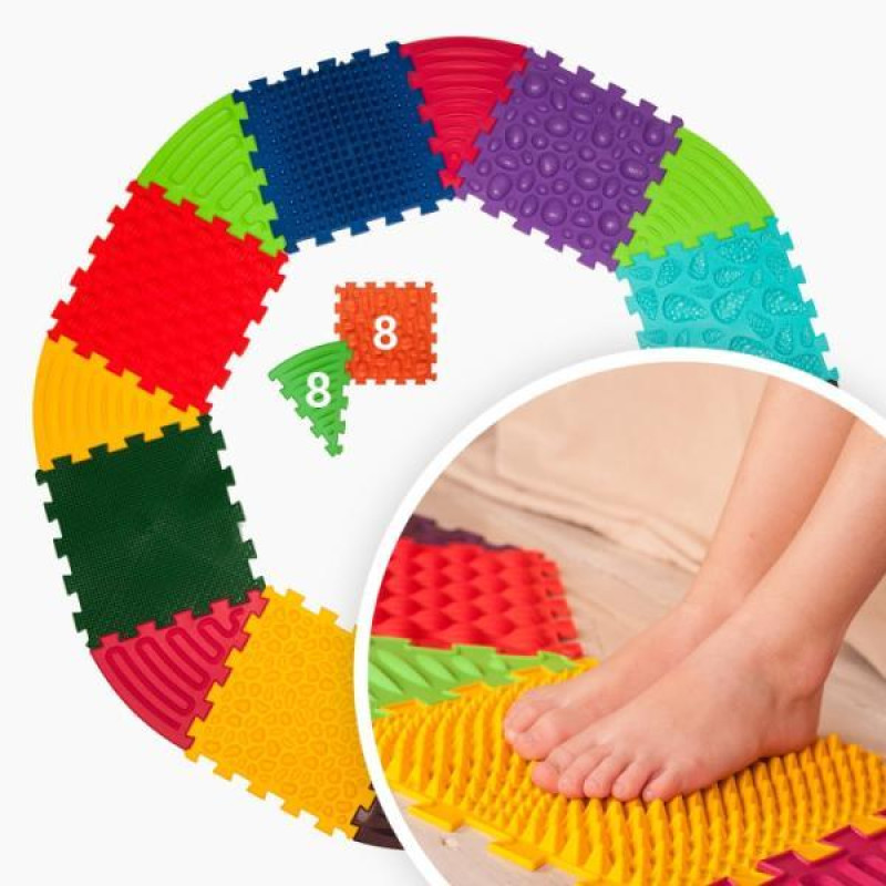 Усі пазли виробляються з одного матеріалу – безпечного, гіпоалергенного ПВХ без шкідливих домішок. Але завдяки різним текстурам відчуваються по-різному. Травка, мушлі, галька, гриби відносяться до більш м'яких пазлів. Вежі, Їжачки, Морські, Жолуді – до середніх. Піраміда, Шипи, Лотос, Шишки відносяться до більш твердих пазлів. Вплив поверхонь різної твердості надає найкращий ефект для масажу, тренування стоп та сенсорної інтеграції.