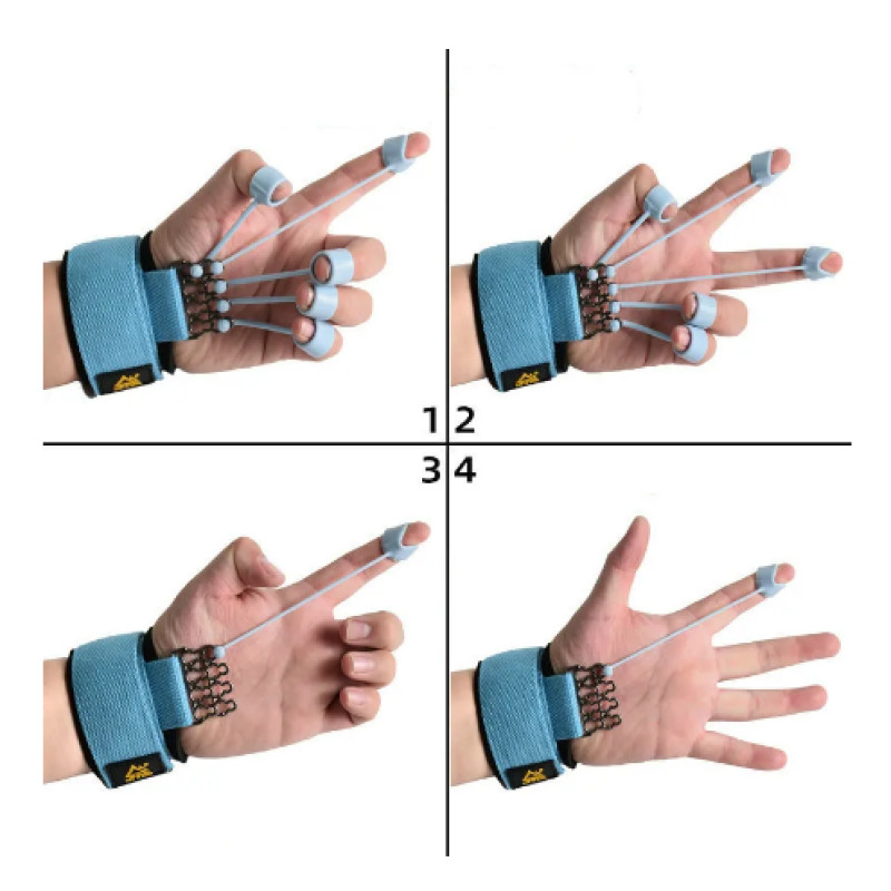 Пристрій кріпиться на зап'ясті браслетом на липучці. На кожен палець надівається кільце. Між кільцями і браслетом приєднані гумки. Стискаючи і розтискаючи кисть, ви зможете розробити потрібні м'язи.