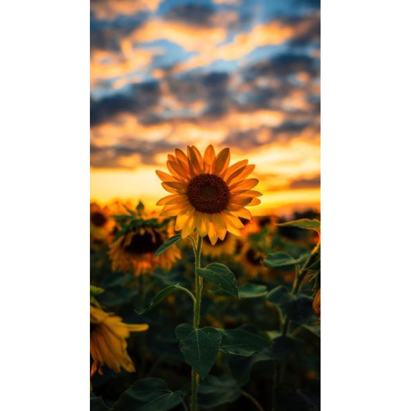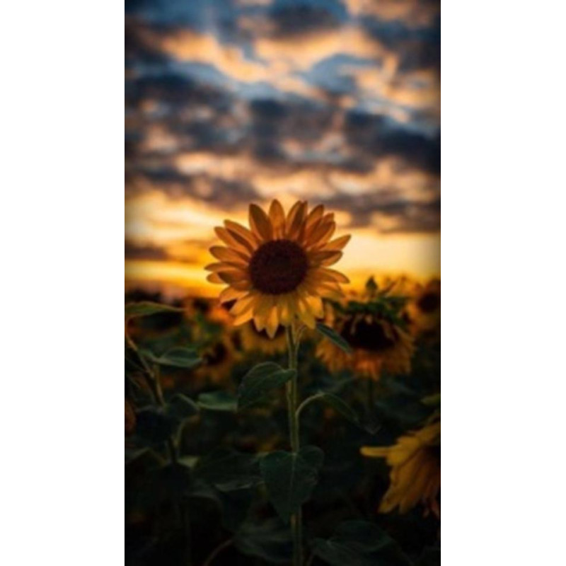 Набір для творчості вишивка камінням Алмазна мозаїка Квіти. Соняшники в багряному заході сонця, 30х40см, полотно на підрамнику, Dreamtoys (Y0050). Комплектація: Полотно з липким шаром на підрамнику, спеціальна ручка-стилус для роботи зі стразами, гель-клей, каміння, схема кольрів. Тип каміння: круг..