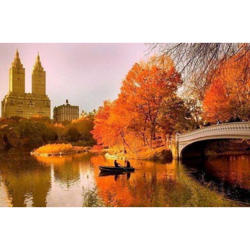 Алмазна мозаїка "Осінній парк із мостом", без підрамника, 35*45см, ТМ Dreamtoys, арт: S30039..