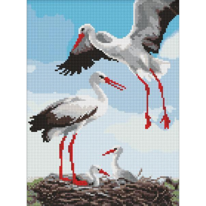 Алмазна мозаїка "Сім'я лелек" 30х40см, в термопакеті, ТМ Ідейка, Україна, арт: AMO8063..