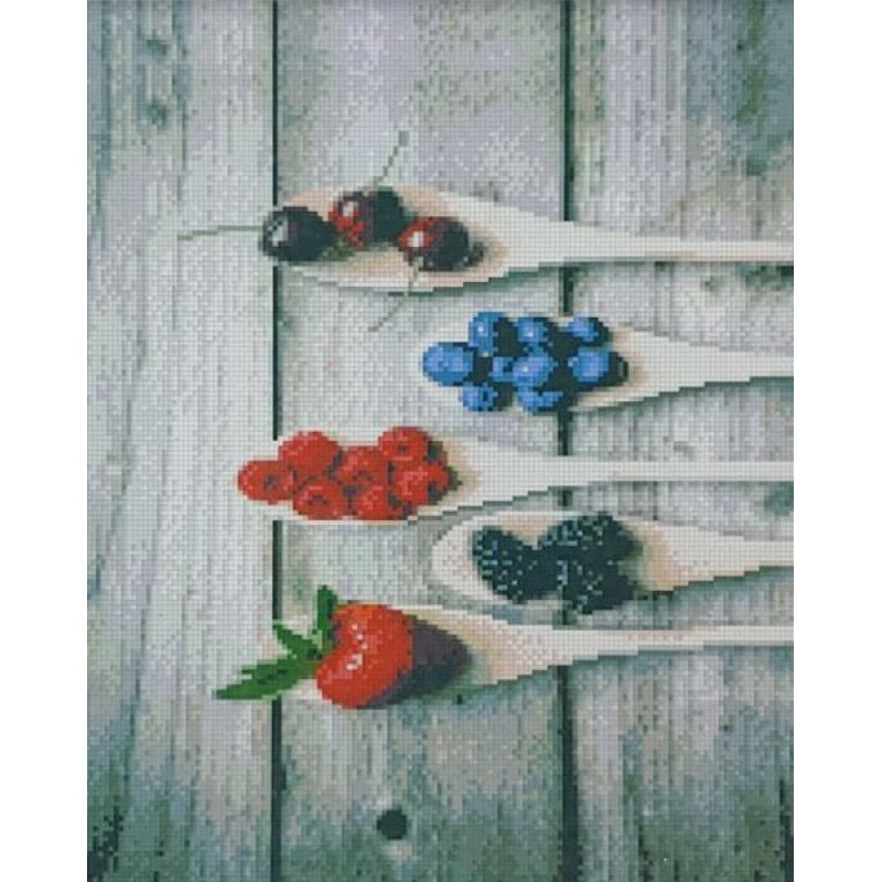 Набір для творчості вишивка камінням Алмазна мозаїка Натюрморти. Ложечки фруктів, 40х50см, полотно на підрамнику, Strateg (D0054-mt). Комплектація: Полотно з липким шаром на підрамнику, спеціальна ручка-стилус для роботи зі стразами, гель-клей, каміння, схема кольрів. Тип каміння: кругле. Закладка:..
