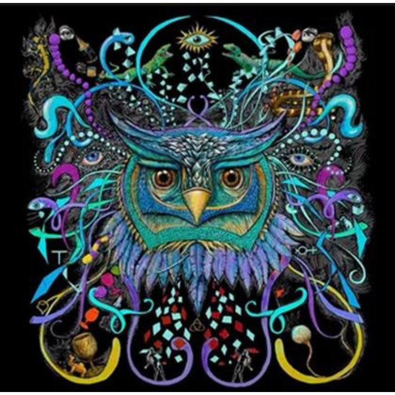 Набір для творчості вишивка камінням Алмазна мозаїка Птахи. Тотем сови, 30х40см, полотно без підрамника, Dreamtoys (H8761). Комплектація: Полотно з липким шаром, спеціальна ручка-стилус для роботи зі стразами, гель-клей, каміння, схема кольорів. Тип каміння: кругле. Закладка: Повна. Особливості: по..