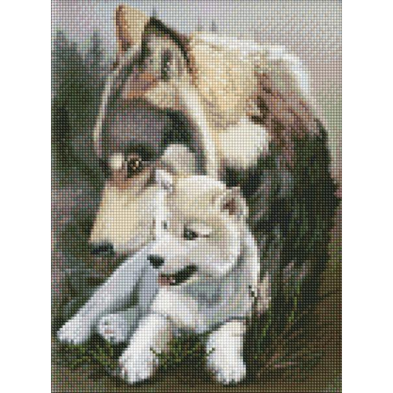 Набір для творчості вишивка камінням Алмазна мозаїка Тварини. Вовча ніжність, 30х40см, полотно на підрамнику, Идейка (AMO7368-mt). Комплектація: Полотно з липким шаром на підрамнику, спеціальна ручка-стилус для роботи зі стразами, гель-клей, каміння, схема кольрів. Тип каміння: кругле. Закладка: По..