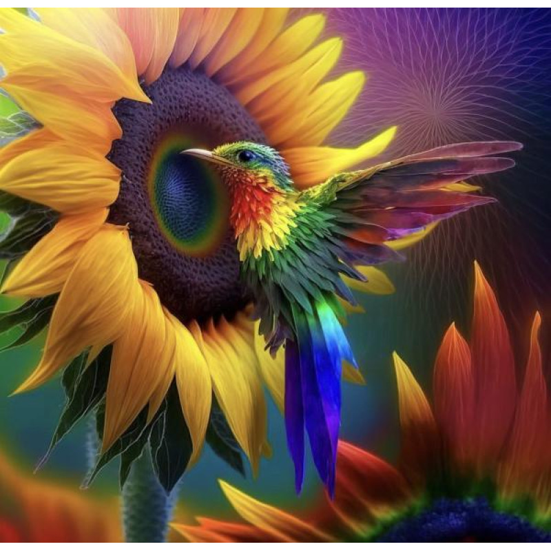 Алмазна мозаїка "Колібрі та соняшник", без підрамника, 35*45см, ТМ Dreamtoys, арт: S30056..