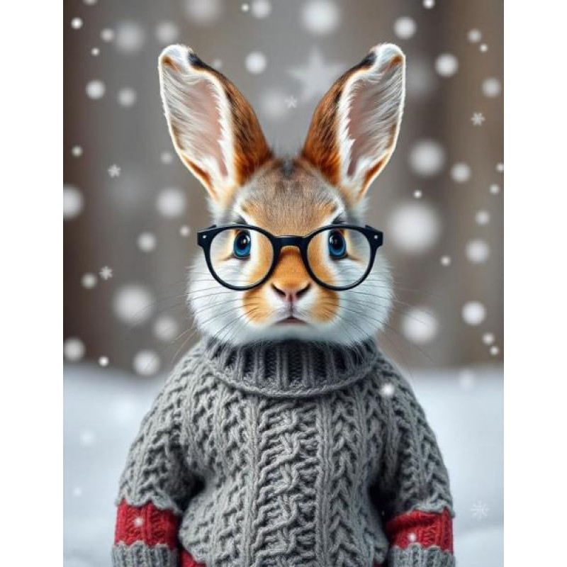 Алмазна мозаїка «Різдвяний ботанік» – це стильний набір для творчості, який поєднує зимову казковість та інтелігентний гумор. На картині зображений милий зайчик у теплій в’язаній кофті та окулярах, який стоїть серед легкого снігопаду. Його уважний погляд і затишний образ створюють атмосферу спокою, ..