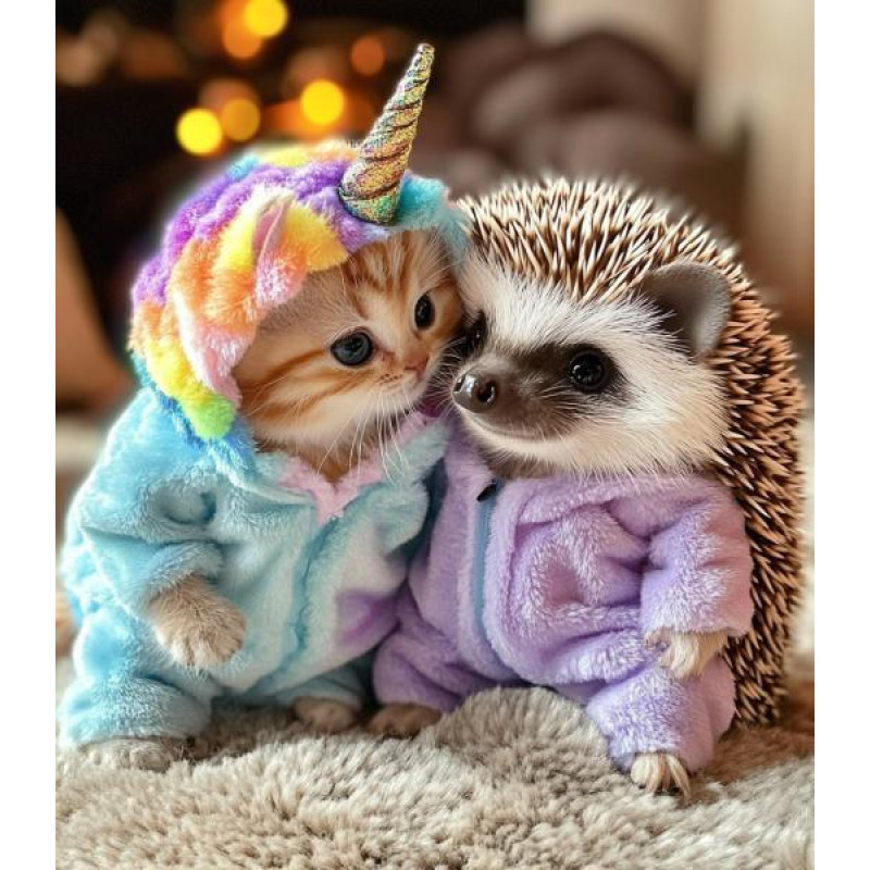 Алмазна мозаїка «Чарівний лісовий друг» – це тепла картина, що випромінює доброту та казковість. Маленька лісова тваринка дивиться великими круглими блакитними оченятами й лагідно посміхається. Її пухнаста шорстка надає зображенню особливої м’якості та чарівності, ніби цей друг може ожити прямо з ка..