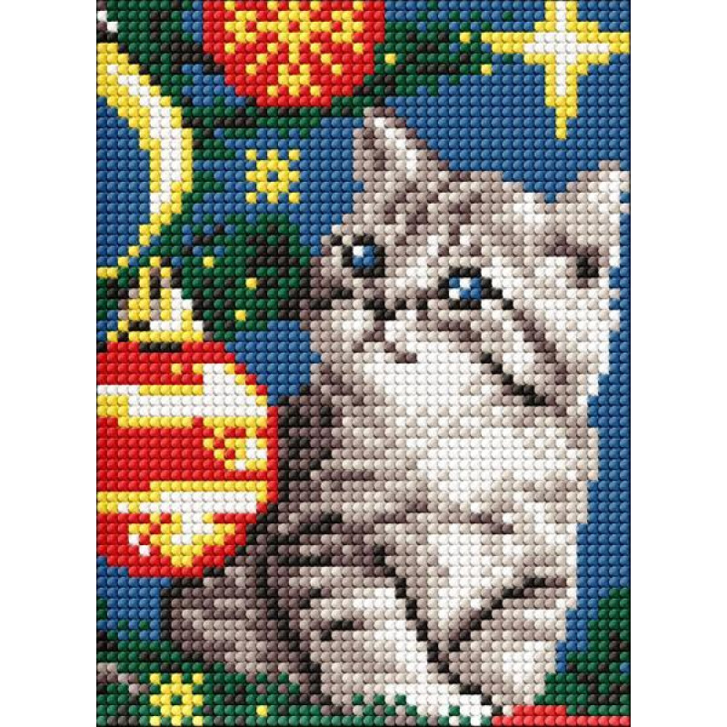 Алмазна мозаїка без підрамника для дітей "Кошеня під ялинкою" 15*20см, ТМ Ідейка, Україна арт: AMM1074..