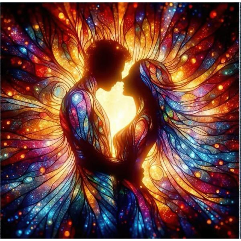 Алмазна мозаїка «Калейдоскоп почуттів» – це незвичайна картина, яка відкриває світ емоцій, показуючи закохану пару ніби крізь калейдоскоп. Чоловік ніжно притуляє до себе жінку, а навколо все грає різнобарвними відтінками, створюючи враження руху та глибини почуттів. Композиція передає чуттєвість, ні..