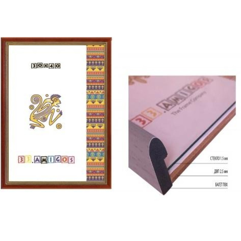 Рамка для алмазної мозаїки та фото, 30*40см, скло 2мм, ДВП 2,5мм, багет ПВХ, світло-коричнева із золотом, 33.Amigos, Україна