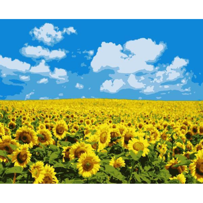 Набір для розпису на полотні Картина за номерами Квіти. Поле соняшників, 40х50см, в термопакеті, Artissimo (PN5379). Комплектація: Акрилові фарби, Пензлі, Полотно на підрамнику. Кількість кольорів: 14. Рівень складності: 4. Упаковка: в термопакеті. Країна-виробник товару: Україна