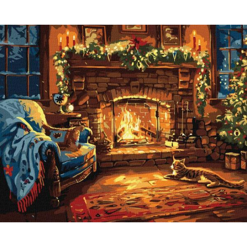 Картина за номерами Зимові та новорічні сюжети. Тепло каміна, 40х50см, в термопакеті, Идейка (KHO6667)