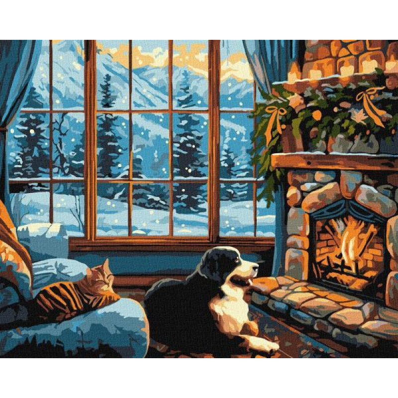 Картина за номерами Зимові та новорічні сюжети. Тепло каміна, 40х50см, в термопакеті, Идейка (КНО6667-mt)