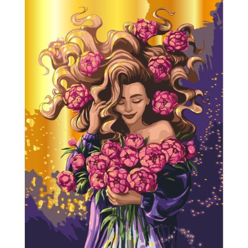 Картина за номерами Люди. Аромат півонії, з фарбами металік, флуоресцентні, 40х50см, в термопакеті, Brushme (BS54010)