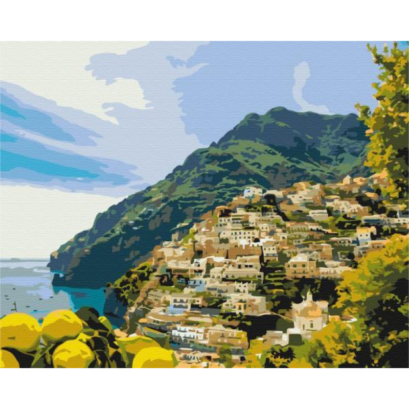 Картина за номерами Пейзаж. Містечко в зелені , 40х50см, в термопакеті, Brushme (BS52715)