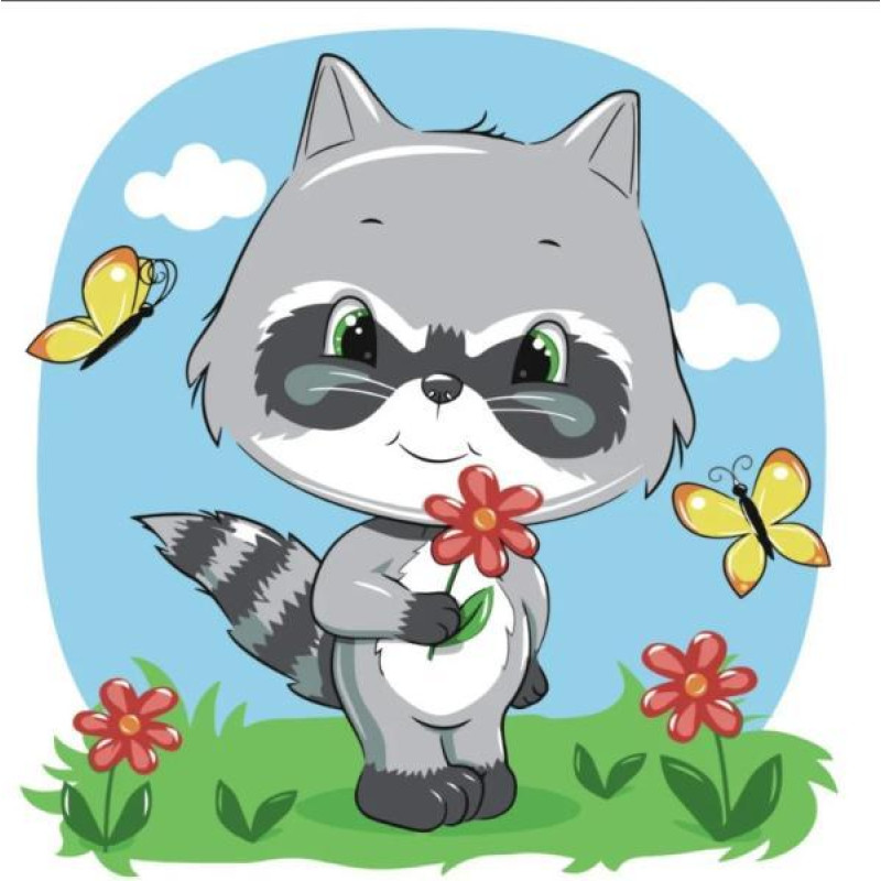 Картина за номерами Тварини. Маленький єнотик, 30х30см, , з лаком, в термопакеті, Strateg (ES074-mt)