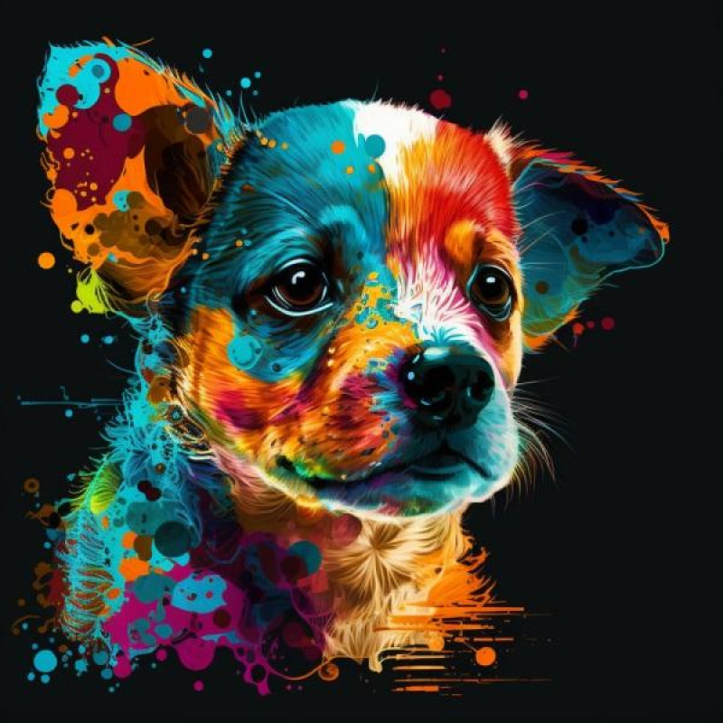 Набір для розпису на полотні Картина за номерами Тварини. Барвисте цуценя, чорний фон, 40х40см, в термопакеті, Strateg (AV4040-20-mt). Комплектація: Полотно на підрамнику, Акрилові фарби, Пензлики різної товщини, Контрольний лист, Кріплення. Кількість кольорів:. Рівень складності:. Упаковка: в термо..