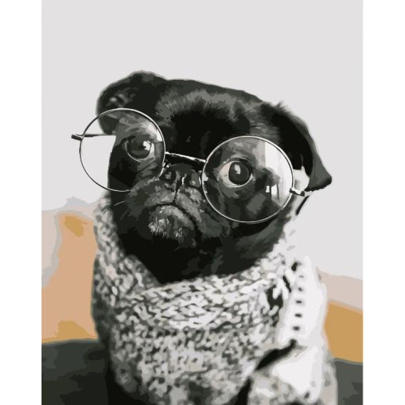 Картина за номерами Тварини. Мопсик в окулярах, , 40х50см, в термопакеті, Strateg (DY107-mt)