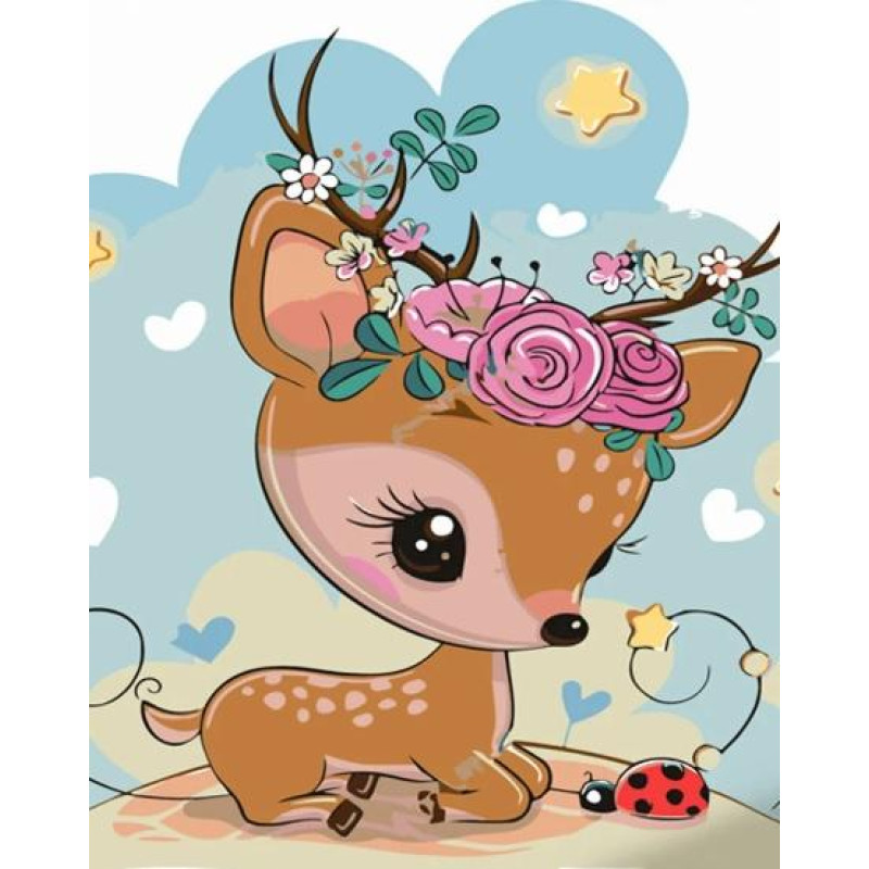 Картина за номерами Тварини. Оленя в квіточках, з лаком, 30х40см, в термопакеті, Strateg (SS6718-mt)