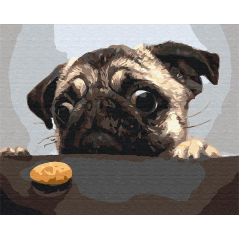 Набір для розпису на полотні Картина за номерами Тварини. Мопсік, 40х50см, в термопакеті, Brushme (BS8765). Комплектація: Полотно на підрамнику, Акрилові фарби, Пензлики різної товщини, Контрольний лист, Кріплення. Кількість кольорів:. Рівень складності:. Упаковка: в термопакеті. Країна-виробник тов..