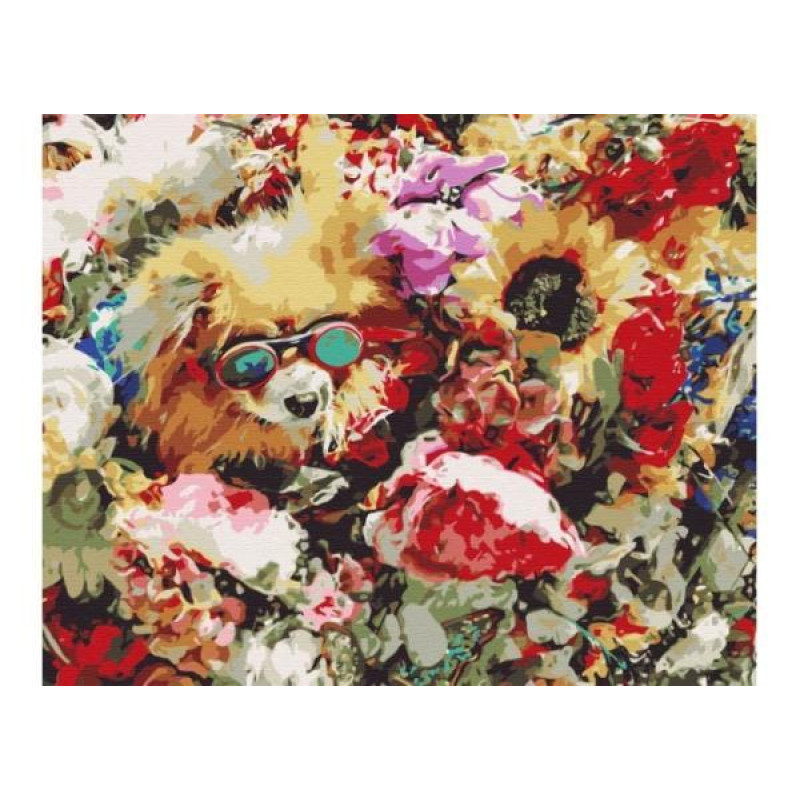 Картина за номерами Тварини. Собака у квітах, 40х50см, в термопакеті, Идейка (КНО6624-mt)