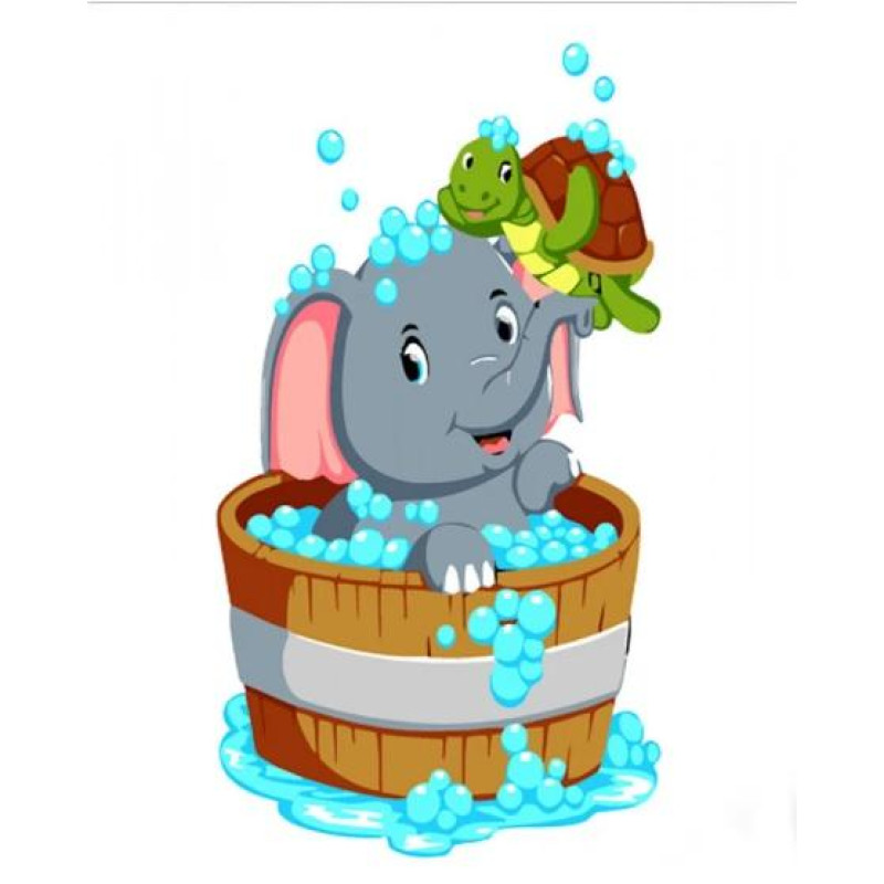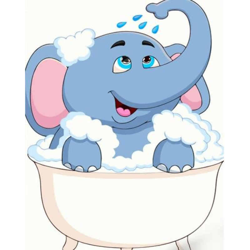 Картина за номерами Тварини. Слоник у ванній, з лаком, 30х40см, в термопакеті, Strateg (SS6727-mt)