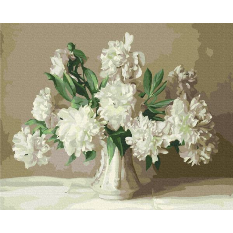 Картина за номерами Натюрморти. Білі півонії у вазі, 40х50см, в термопакеті, Brushme (BS51399)