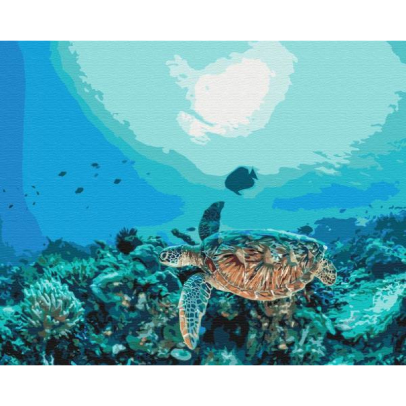 Картина за номерами Тварини. Черепаха в кораловому рифі, 40х50см, в термопакеті, Brushme (BS51438)