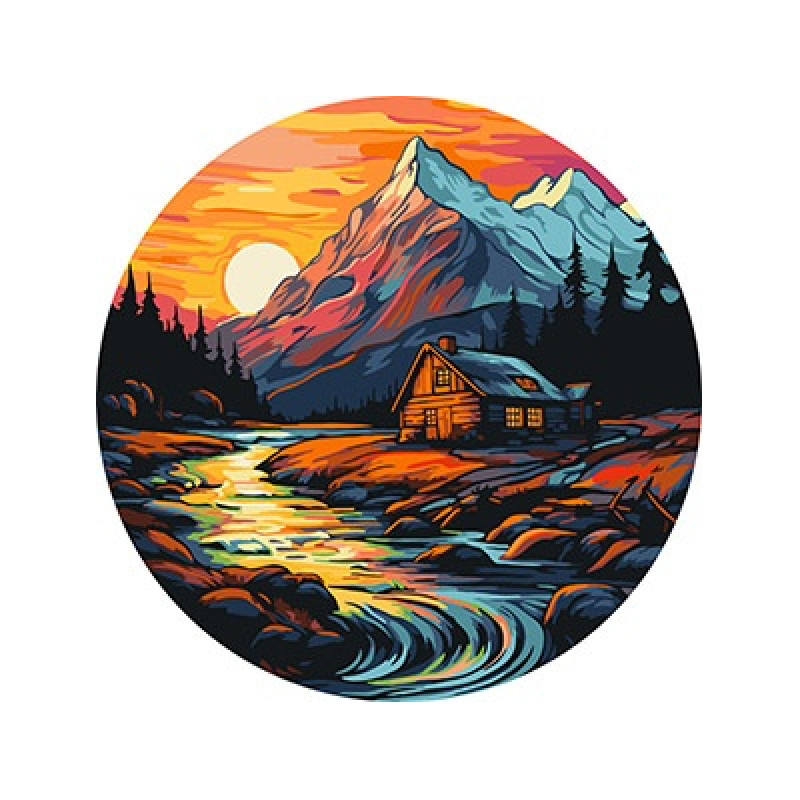 Картина за номерами Пейзаж. Будинок біля струмка, Круглий підрамник, d33см, термопакет, Идейка (KHO-R1036)