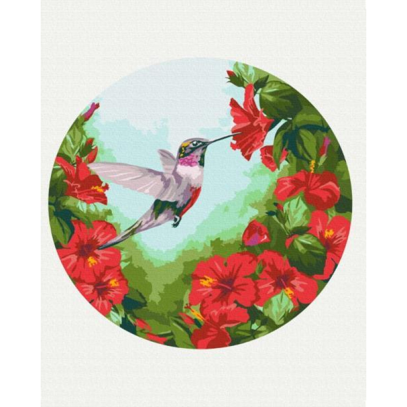 Картина за номерами Птахи. Колібрі (Розмір M), Круглий підрамник, d30см, термопакет, Brushme (RC00012M)