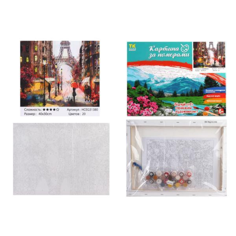 Набір для розпису на полотні Картина за номерами Міста. Осінь в Парижі, 30х40см, в коробці, TK Group (31380-mt). Комплектація: Полотно на підрамнику, Акрилові фарби, Пензлики різної товщини, Контрольний лист, Кріплення. Кількість кольорів: 20-36. Рівень складності:. Упаковка: в коробці. Країна-виробник товару: Китай