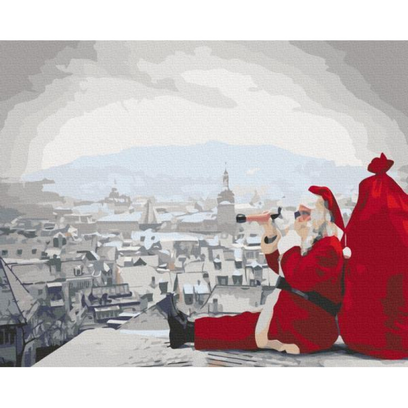 Картина за номерами Зимові та новорічні сюжети. Санта не дрімає, 40х50см, термопакет, Brushme (BS26273)