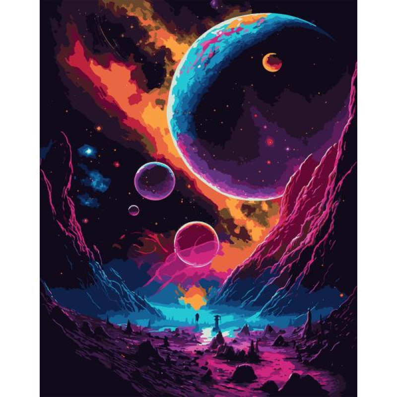 Картина за номерами Абстракція. Фантазійний космос, з неоновими фарбами, 40х50см, в термопакеті, SANTI (955046-tp)