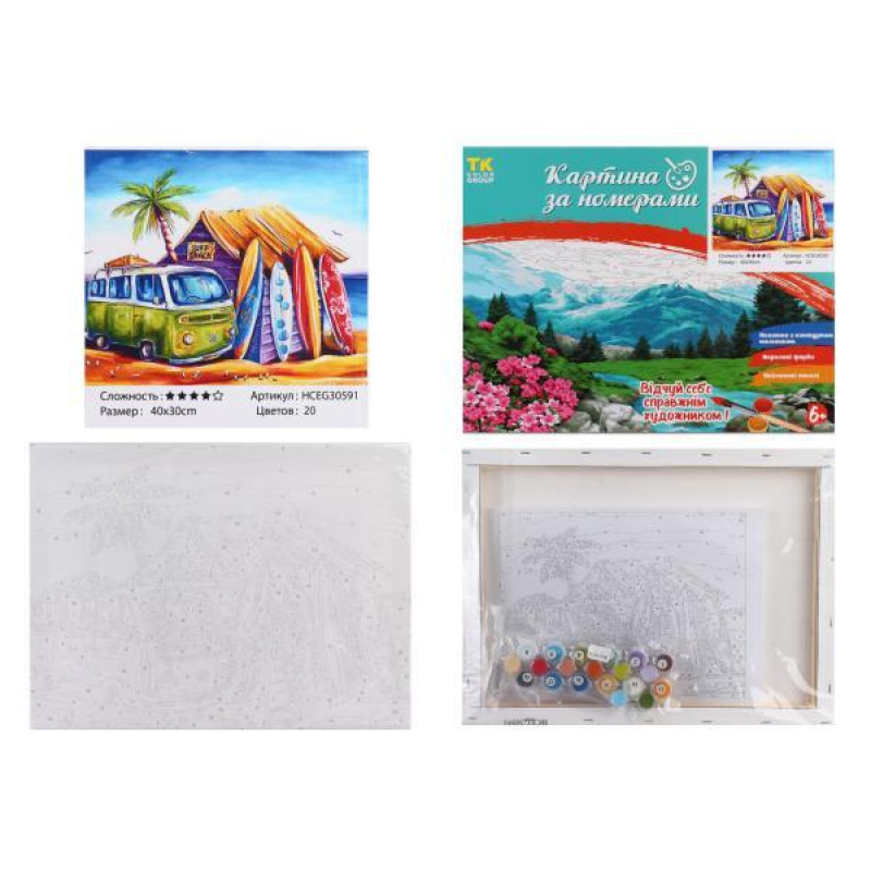 Набір для розпису на полотні Картина за номерами МІКС. , 30х40см, в коробці, TK Group (30591-mt). Комплектація: Полотно на підрамнику, Акрилові фарби, Пензлики різної товщини, Контрольний лист, Кріплення. Кількість кольорів: 20-36. Рівень складності:. Упаковка: в коробці. Країна-виробник товару: Китай
