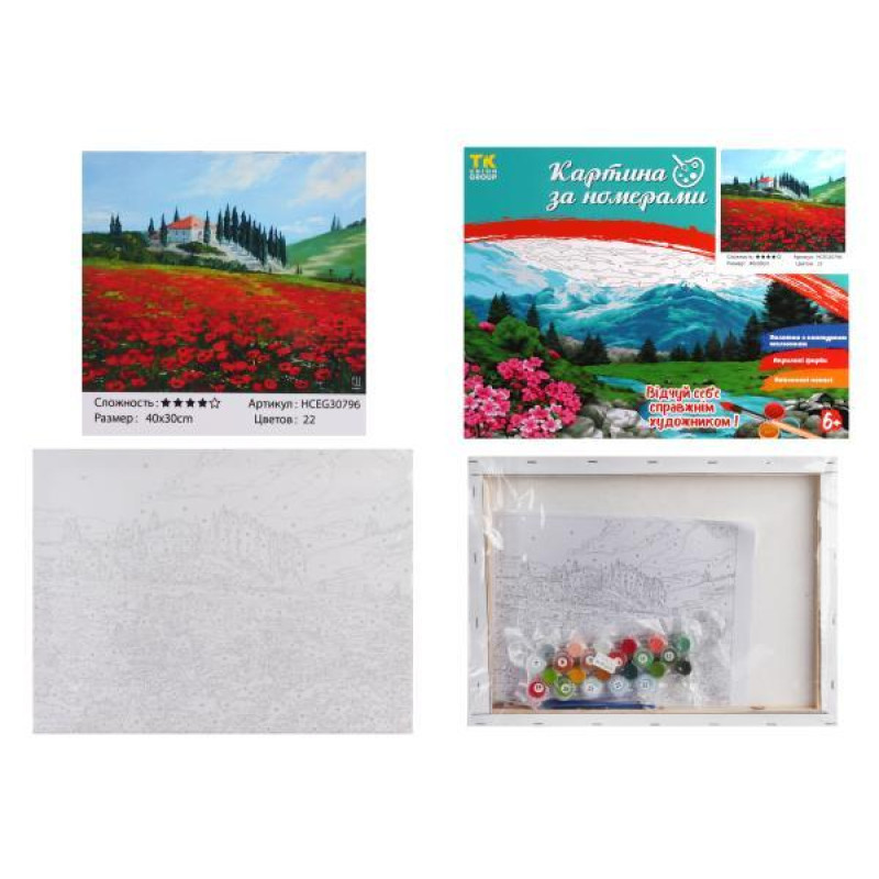 Набір для розпису на полотні Картина за номерами МІКС. , 30х40см, в коробці, TK Group (30796-mt). Комплектація: Полотно на підрамнику, Акрилові фарби, Пензлики різної товщини, Контрольний лист, Кріплення. Кількість кольорів: 20-36. Рівень складності:. Упаковка: в коробці. Країна-виробник товару: Китай
