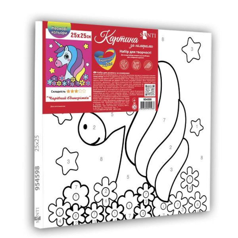 Картина за номерами Тварини. Чарівний Єдиноріжка, 25х25 см, термопакет, SANTI (954598-tp)