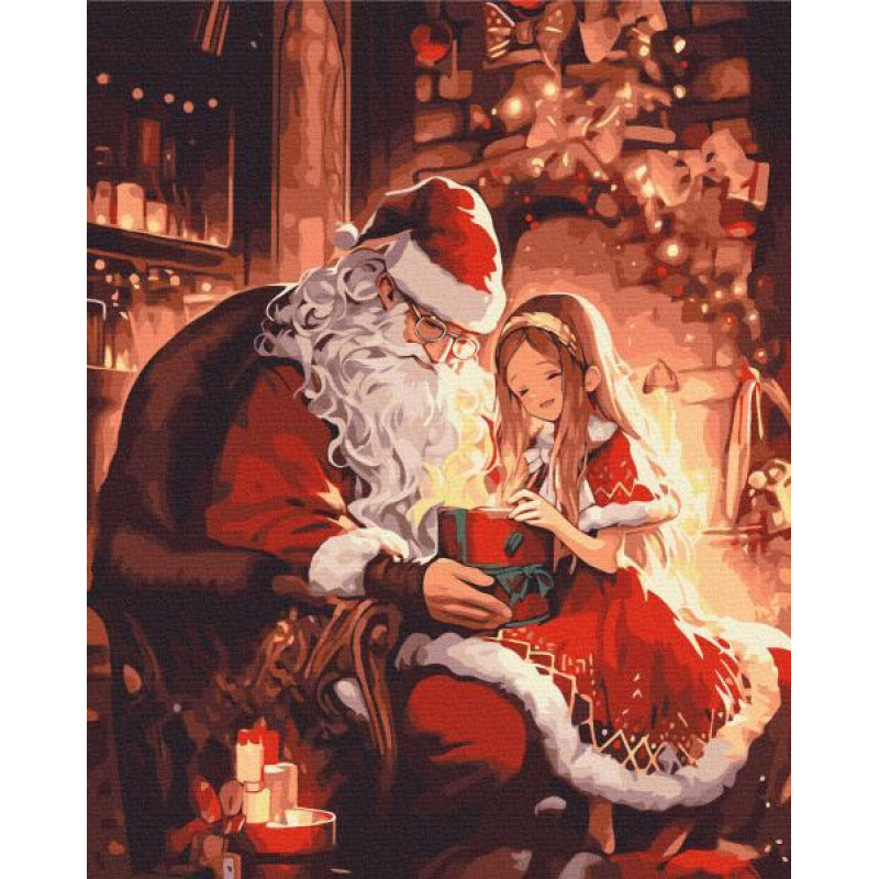 Картина за номерами Зимові та новорічні сюжети. Подарунок від Санті, 40х50см, термопакет, Brushme (BS53850)