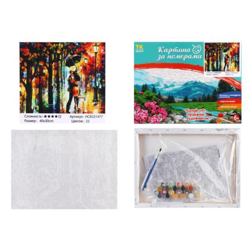 Набір для розпису на полотні Картина за номерами Любов. Танець під дощем, 30х40см, в коробці, TK Group (31477-mt). Комплектація: Полотно на підрамнику, Акрилові фарби, Пензлики різної товщини, Контрольний лист, Кріплення. Кількість кольорів: 20-36. Рівень складності:. Упаковка: в коробці. Країна-виробник товару: Китай