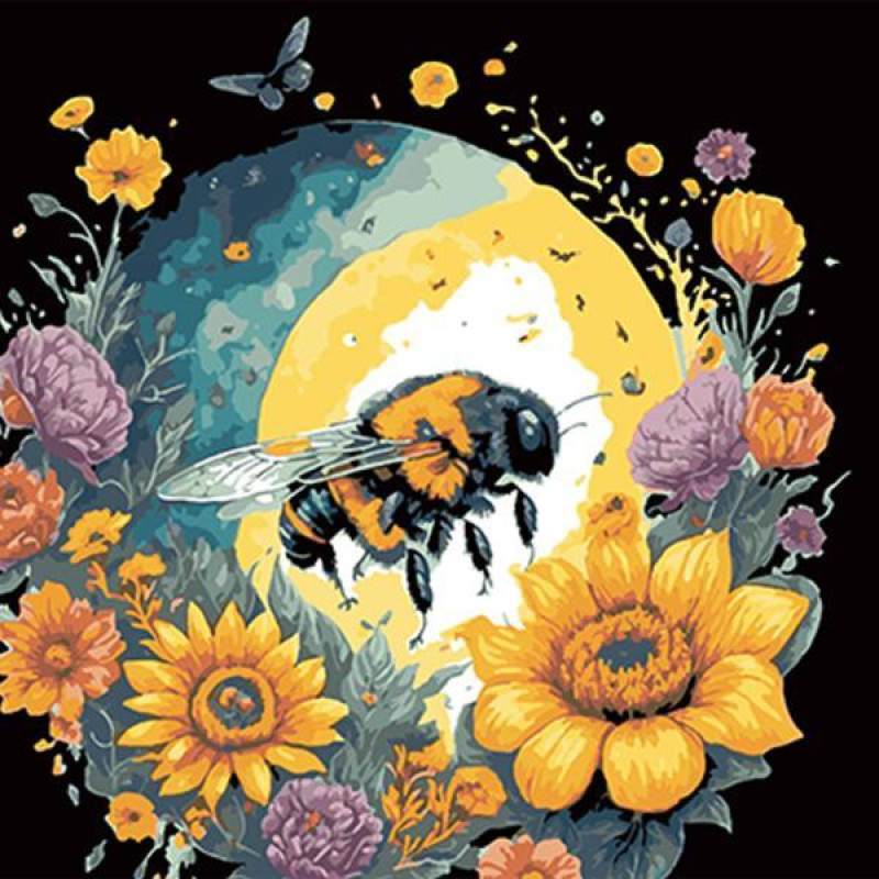 Набір для розпису на полотні Картина за номерами Тварини. Бджола і квіткова краса, чорний фон, 40х40см, в термопакеті, Strateg (AV4040-33-mt). Комплектація: Полотно на підрамнику, Акрилові фарби, Пензлики різної товщини, Контрольний лист, Кріплення. Кількість кольорів: 22. Рівень складності: 3. Упаковка: в термопакеті. Країна-виробник товару: Україна