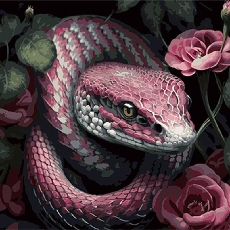 Набір для розпису на полотні Картина за номерами Тварини. Екзотична змія у квітковій атмосфері, чорний фон, 40х40см, в термопакеті, Strateg (AV4040-48-mt). Комплектація: Полотно на підрамнику, Акрилові фарби, Пензлики різної товщини, Контрольний лист, Кріплення. Кількість кольорів: 21. Рівень складності: 3. Упаковка: в термопакеті. Країна-виробник товару: Україна