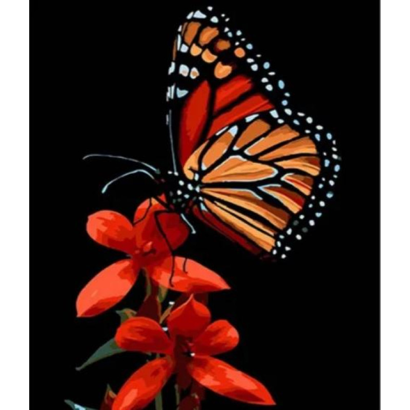 Картина за номерами Квіти. Краса метелика на червоному цвіті, чорний фон, 30х40см, в термопакеті, Strateg (FH-13-mt)