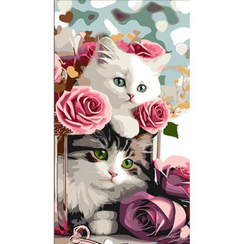 Картина за номерами Тварини. Квіткові кошенята, 25х50см, в термопакеті, Strateg (WW220-mt)