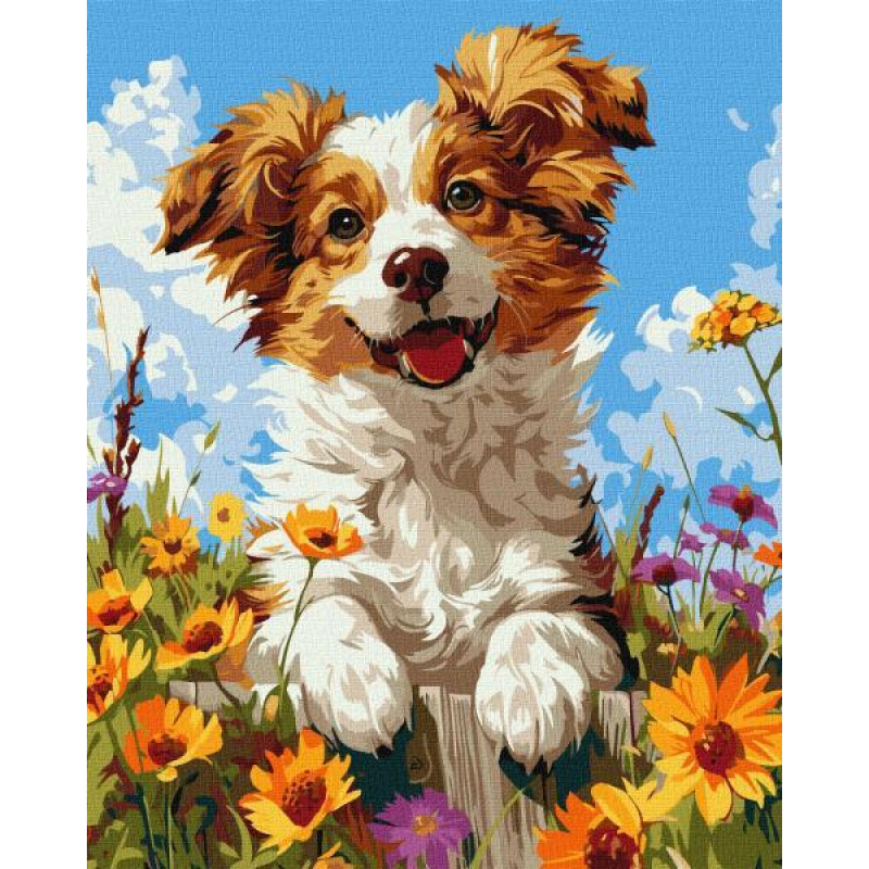 Картина за номерами Тварини. Собака у квітах, 40х50см, в термопакеті, Идейка (КНО6624-mt)