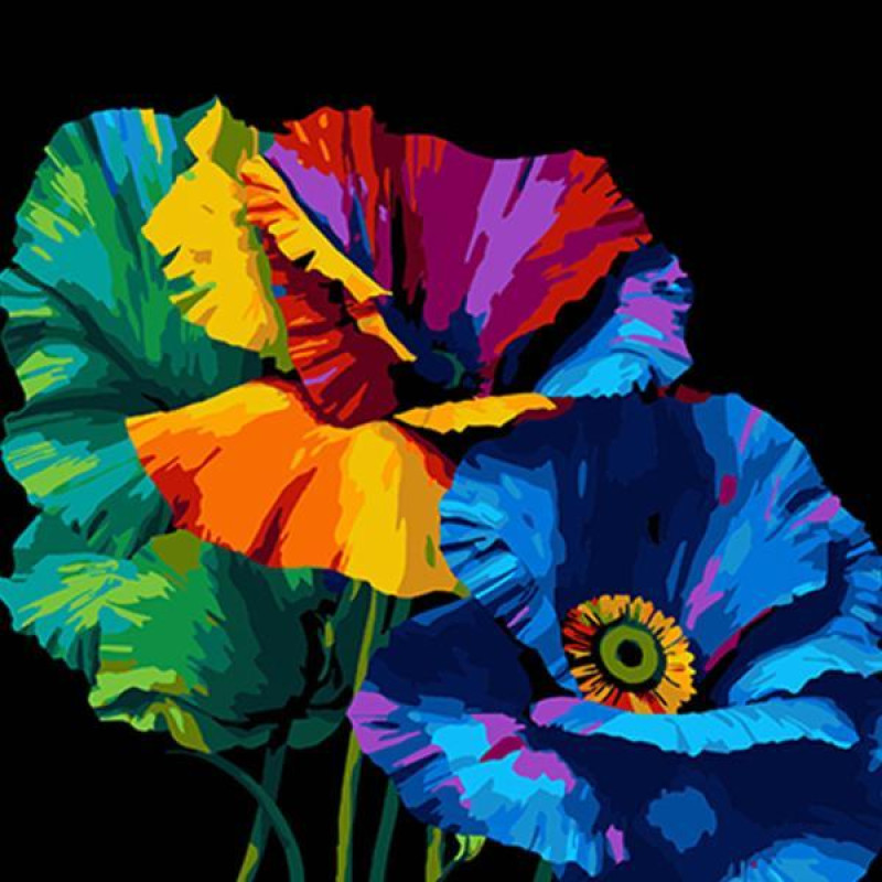 Картина за номерами Квіти. Веселка маків, чорний фон, 40х40см, в термопакеті, Strateg (AV4040-77-mt)