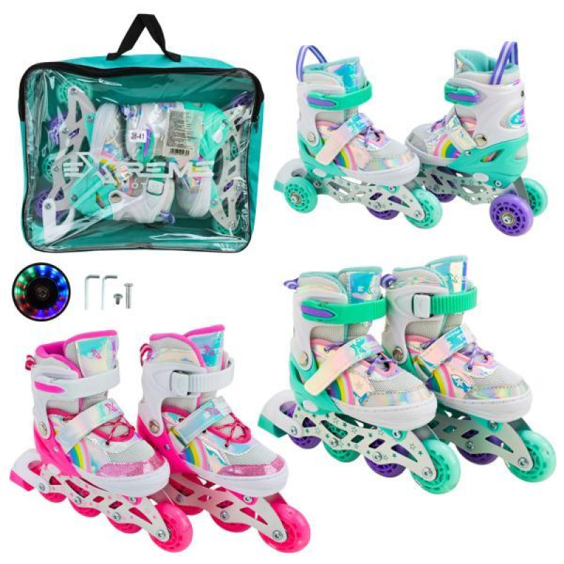 Ролики L (39-42) квади, колеса PU колеса світяться, 3 кольори, сумка 41*30*10см..